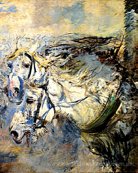 Wir bieten Ihnen eine handgefertigte Reproduktion auf Leinwand des berühmten Kunstwerks 'Zwei weiße Pferde' von Giovanni Boldini, aus dem Reproduktionsmuseum.
