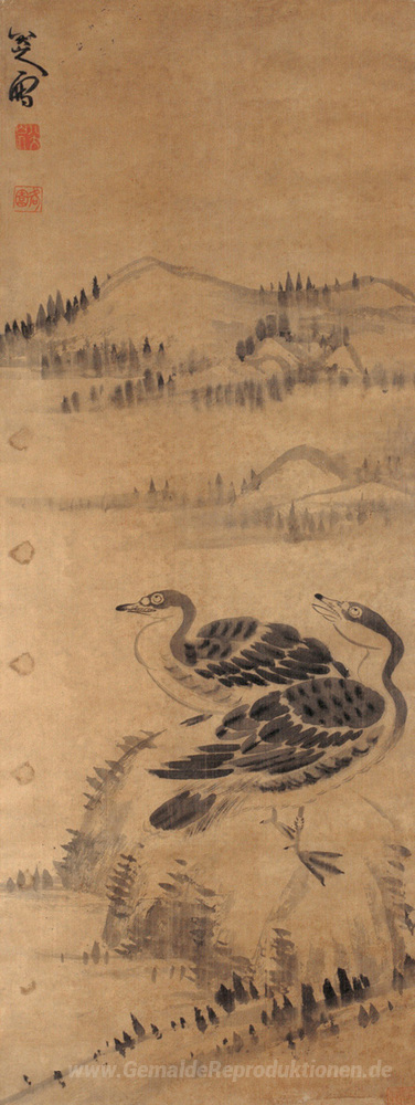 Willkommen in unserer Welt der Ölgemälde, in der Kunstwerke zu mehr als nur dekorativen Elementen werden – sie eröffnen Perspektiven und schaffen Atmosphäre. Eines unserer herausragenden Stücke ist Zwei Wildgänse von dem angesehenen Künstler Bada Shanren, der für seinen einzigartigen Stil und seine tiefgründigen Interpretationen bekannt ist. Shanren, ein Meister der Ming-Dynastie, verbindet traditionelle Techniken mit einer innovativen Herangehensweise, die seine Werke zeitlos und faszinierend macht.