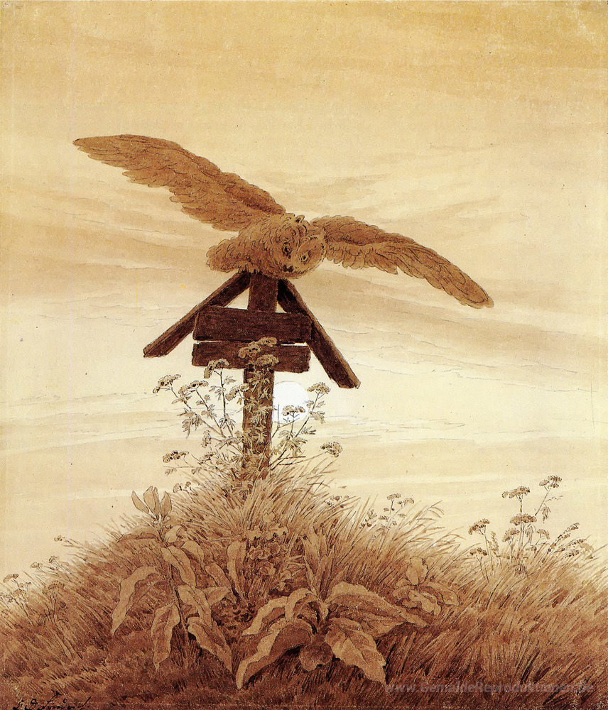 Wir bieten Ihnen eine handgefertigte Reproduktion auf Leinwand des berühmten Kunstwerks 'Eule auf einem Grab' von Caspar David Friedrich, aus dem Reproduktionsmuseum.