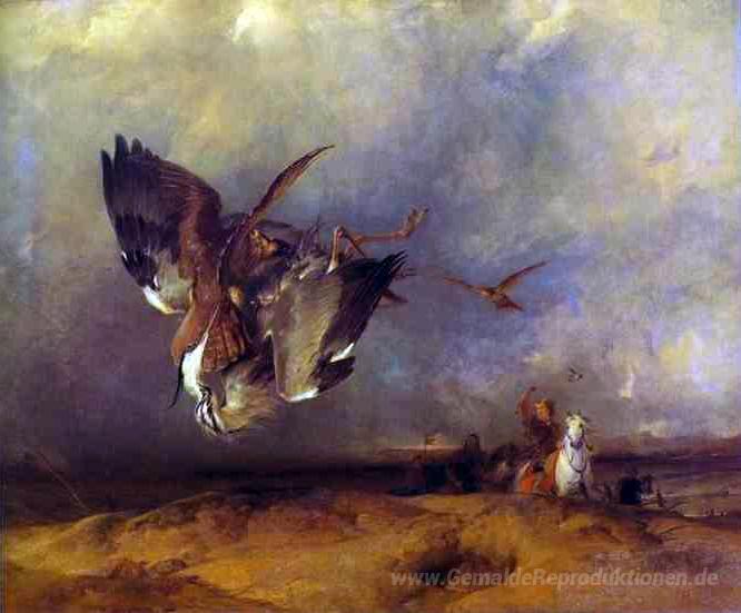 Wir bieten Ihnen eine handgefertigte Reproduktion auf Leinwand des berühmten Kunstwerks 'Hawking' von Edwin Henry Landseer, aus dem Reproduktionsmuseum.