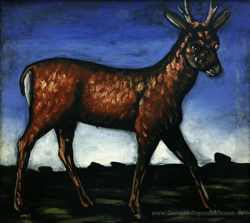 Wir bieten Ihnen eine handgefertigte Reproduktion auf Leinwand des berühmten Kunstwerks 'Hirsch' von Niko Pirosmani, aus dem Reproduktionsmuseum.