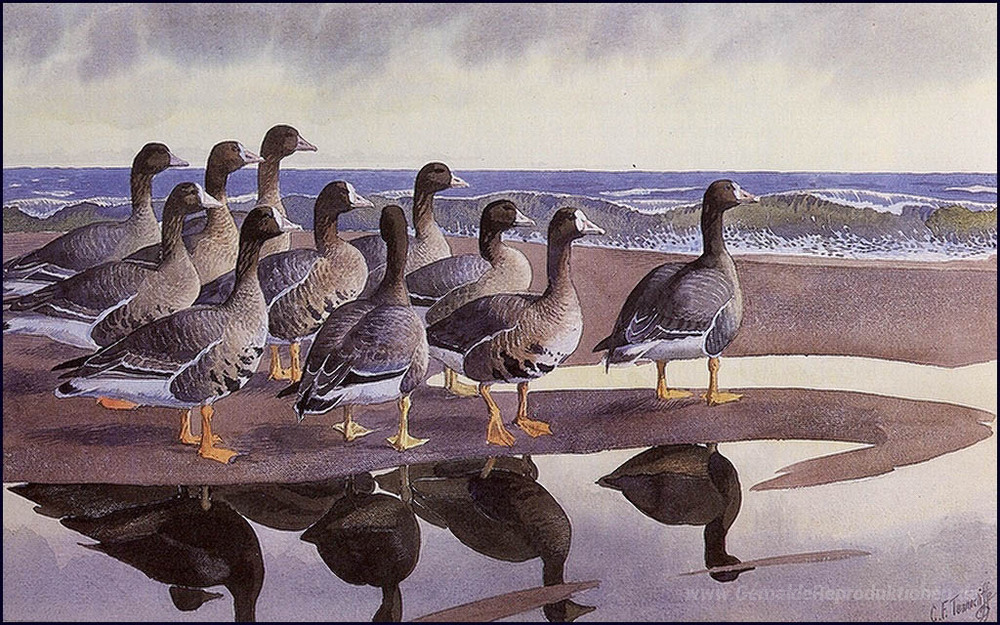 Wir bieten Ihnen eine handgefertigte Reproduktion auf Leinwand des berühmten Kunstwerks 'Schar At The Bar' von Charles Tunnicliffe, aus dem Reproduktionsmuseum.