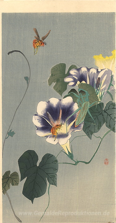 Willkommen in unserer exquisiten Sammlung von Ölgemälden, wo Kunst auf Emotionen trifft. Jedes Werk erzählt eine eigene Geschichte und schafft eine einzigartige Atmosphäre in Ihrem Zuhause. Ein herausragendes Beispiel ist das faszinierende Gemälde „Wespen und Gottesanbeterin“ des renommierten Künstlers Ohara Koson. Koson gilt als Meister der japanischen Druckkunst, und sein unverwechselbarer Stil verbindet Tradition mit einer tiefen Naturverbundenheit.