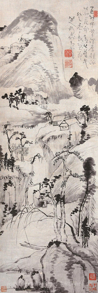 Wir bieten Ihnen eine handgefertigte Reproduktion auf Leinwand des berühmten Kunstwerks 'Landschaft (Juran Style)' von Bada Shanren, aus dem Reproduktionsmuseum.