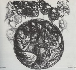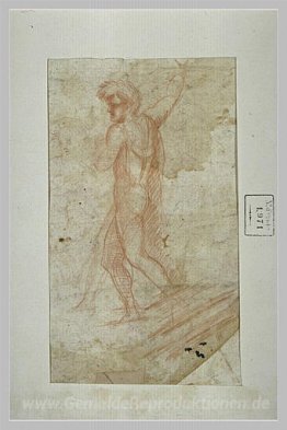 Zwei weibliche Figuren. Eine männliche Figur mit einem Esel.