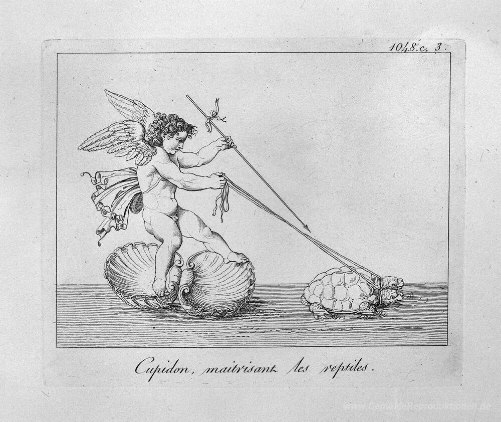 Wir bieten Ihnen eine handgefertigte Reproduktion auf Leinwand des berühmten Kunstwerks 'Amor und die Schildkröten' von Giovanni Battista Piranesi, aus dem Reproduktionsmuseum.