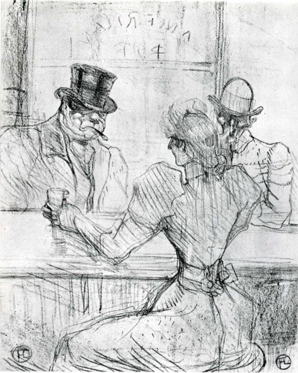 Wir bieten Ihnen eine handgefertigte Reproduktion auf Leinwand des berühmten Kunstwerks 'An der Bar Picton, Rue Scribe' von Henri de Toulouse-Lautrec, aus dem Reproduktionsmuseum.