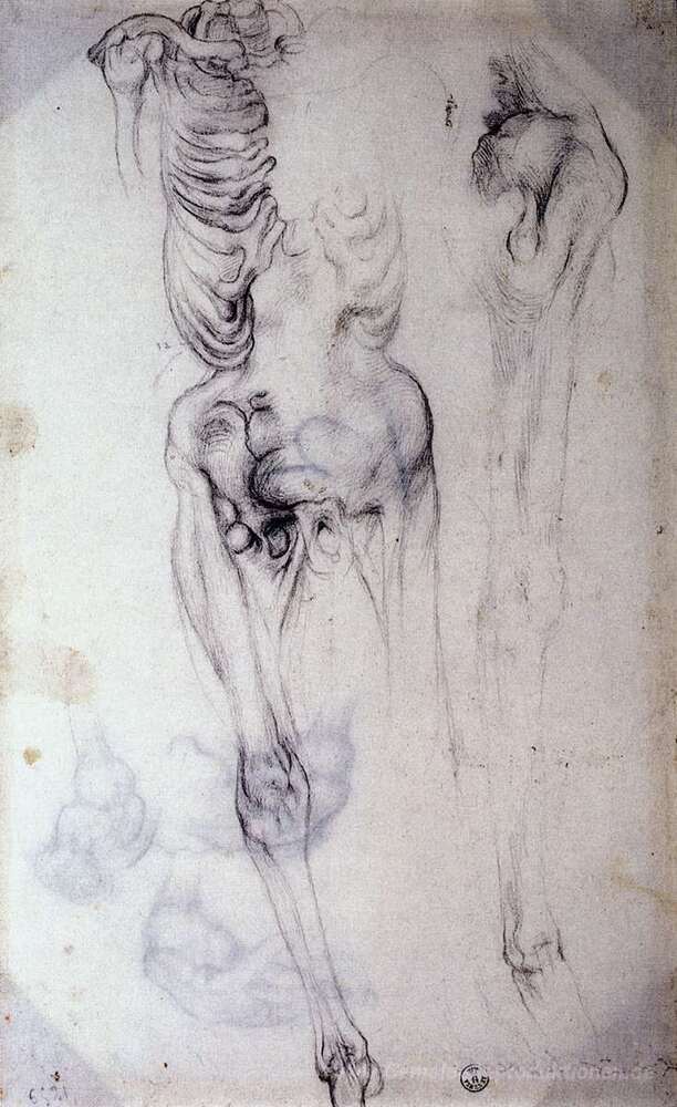 Wir bieten Ihnen eine handgefertigte Reproduktion auf Leinwand des berühmten Kunstwerks 'Anatomische Studie' von Jacopo Pontormo, aus dem Reproduktionsmuseum.