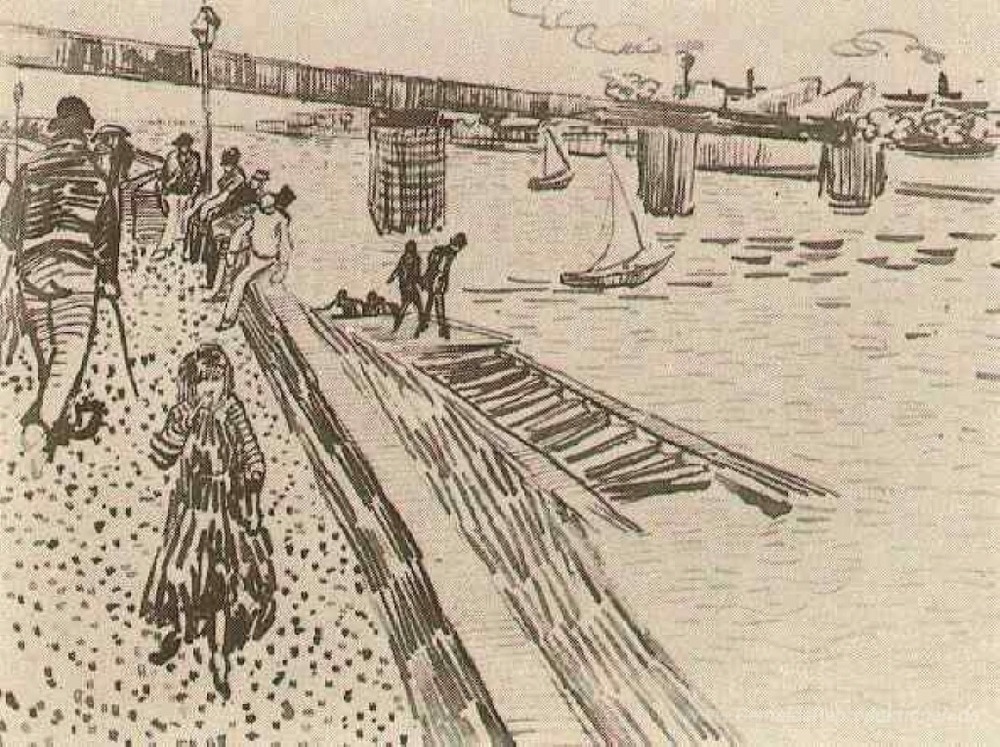 Wir bieten Ihnen eine handgefertigte Reproduktion auf Leinwand des berühmten Kunstwerks 'Ansicht von einem Fluss, Kai, und die Brücke' von Vincent van Gogh, aus dem Reproduktionsmuseum.