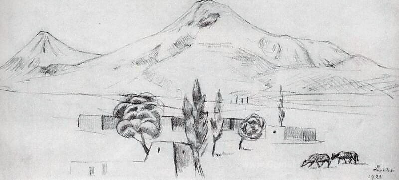 Wir bieten Ihnen eine handgefertigte Reproduktion auf Leinwand des berühmten Kunstwerks 'Ararat' von Martiros Saryan, aus dem Reproduktionsmuseum.