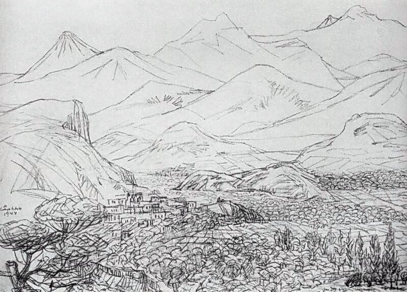 Wir bieten Ihnen eine handgefertigte Reproduktion auf Leinwand des berühmten Kunstwerks 'Armenien' von Martiros Saryan, aus dem Reproduktionsmuseum.