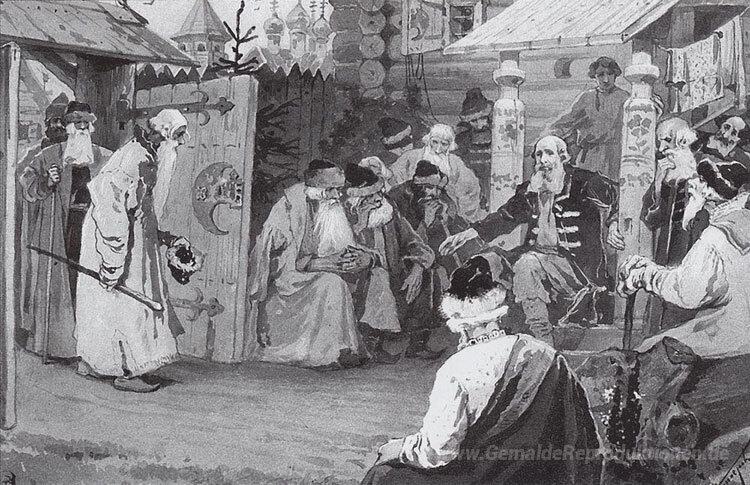 Wir bieten Ihnen eine handgefertigte Reproduktion auf Leinwand des berühmten Kunstwerks 'Auf dem Konzil. Skizzieren.' von Mikhail Nesterov, aus dem Reproduktionsmuseum.