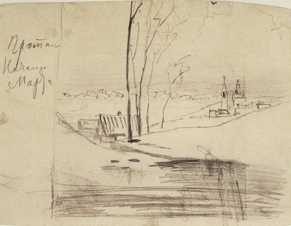 Wir bieten Ihnen eine handgefertigte Reproduktion auf Leinwand des berühmten Kunstwerks 'Auftauen. Anfang März' von Aleksey Savrasov, aus dem Reproduktionsmuseum.