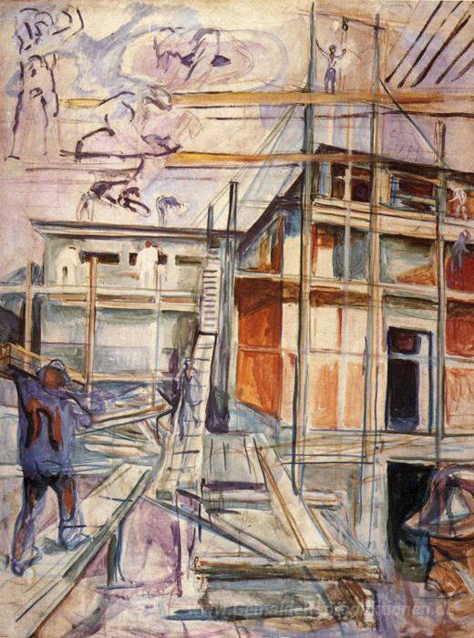 Wir bieten Ihnen eine handgefertigte Reproduktion auf Leinwand des berühmten Kunstwerks 'Bau der Winter-Studio. Ekely' von Edvard Munch, aus dem Reproduktionsmuseum.