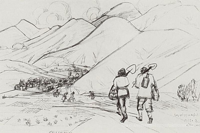 Wir bieten Ihnen eine handgefertigte Reproduktion auf Leinwand des berühmten Kunstwerks 'Bauern' von Martiros Saryan, aus dem Reproduktionsmuseum.