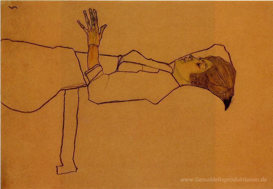 Wir bieten Ihnen eine handgefertigte Reproduktion auf Leinwand des berühmten Kunstwerks 'Bekleidet Frau, Zurücklehnen' von Egon Schiele, aus dem Reproduktionsmuseum.