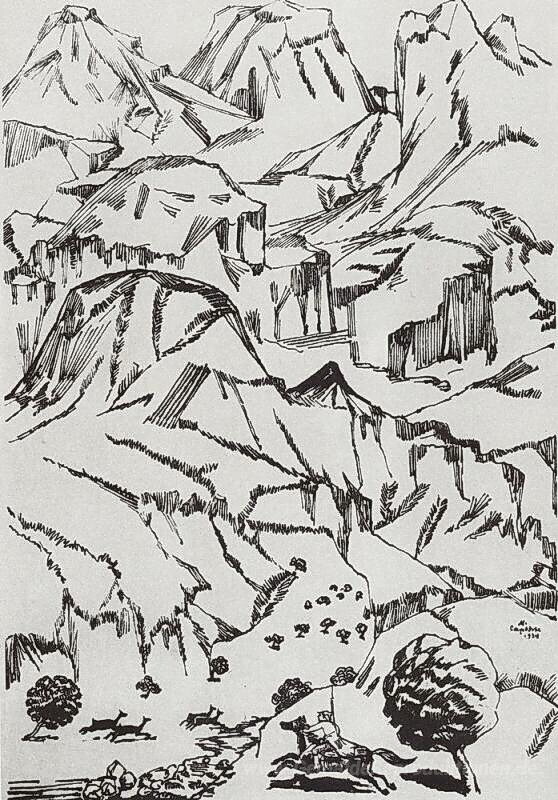 Wir bieten Ihnen eine handgefertigte Reproduktion auf Leinwand des berühmten Kunstwerks 'Berge' von Martiros Saryan, aus dem Reproduktionsmuseum.