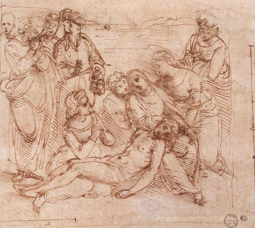 Wir bieten Ihnen eine handgefertigte Reproduktion auf Leinwand des berühmten Kunstwerks 'Beweinung Christi' von Raphael, aus dem Reproduktionsmuseum.