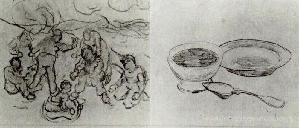 Wir bieten Ihnen eine handgefertigte Reproduktion auf Leinwand des berühmten Kunstwerks 'Blatt mit Skizzen von Figuren' von Vincent van Gogh, aus dem Reproduktionsmuseum.