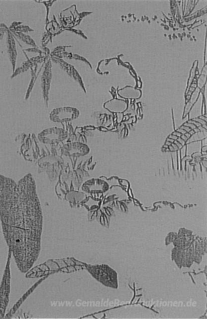 Wir bieten Ihnen eine handgefertigte Reproduktion auf Leinwand des berühmten Kunstwerks 'Blumen und Seerosen im Mangwe, Tome' von Katsushika Hokusai, aus dem Reproduktionsmuseum.