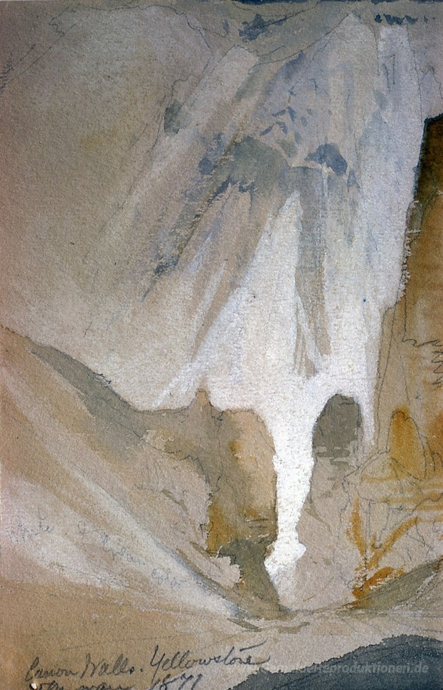 Wir bieten Ihnen eine handgefertigte Reproduktion auf Leinwand des berühmten Kunstwerks 'Canyon Walls, Yellowstone (Skizze)' von Thomas Moran, aus dem Reproduktionsmuseum.