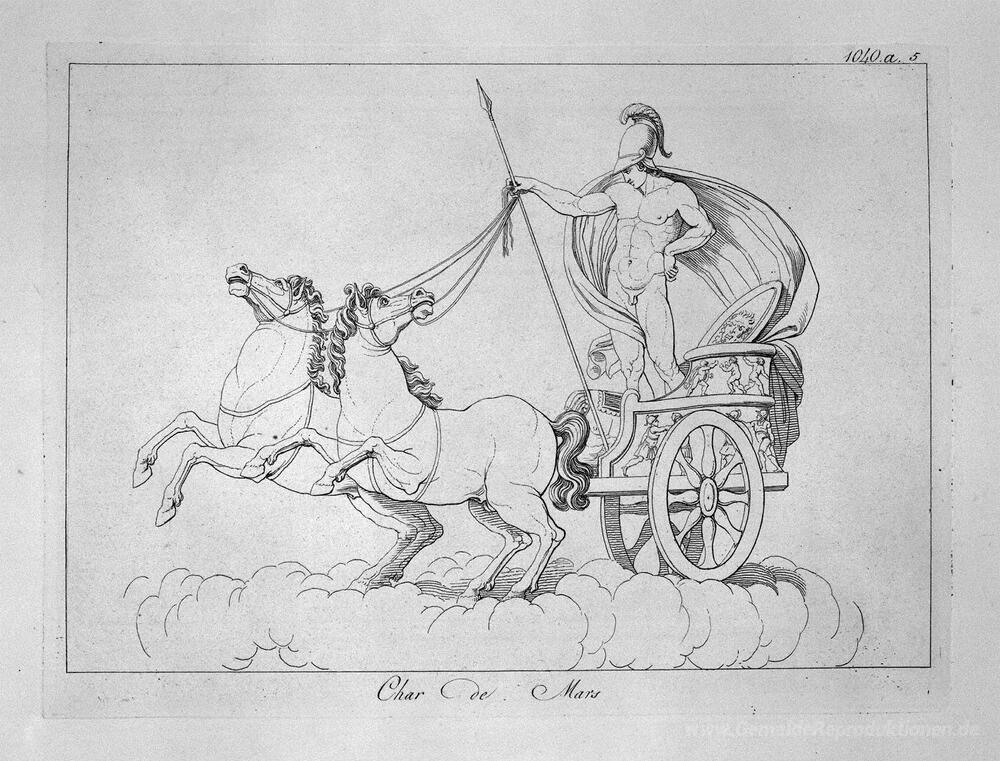 Wir bieten Ihnen eine handgefertigte Reproduktion auf Leinwand des berühmten Kunstwerks 'Chariot of Mars' von Giovanni Battista Piranesi, aus dem Reproduktionsmuseum.