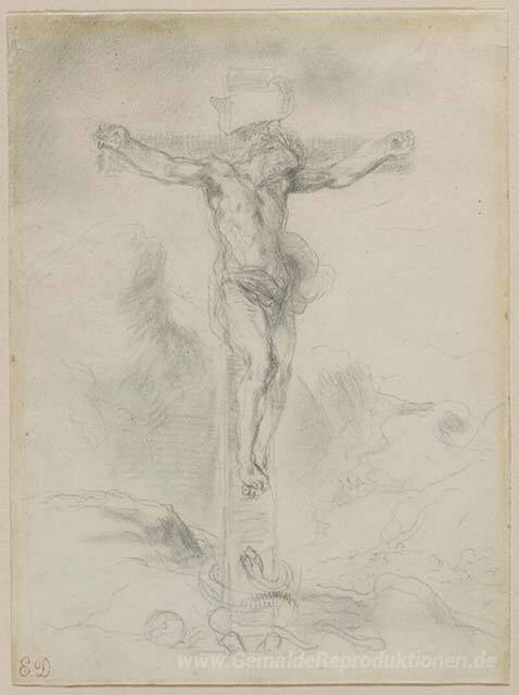 Wir bieten Ihnen eine handgefertigte Reproduktion auf Leinwand des berühmten Kunstwerks 'Christus am Kreuz' von Eugene Delacroix, aus dem Reproduktionsmuseum.