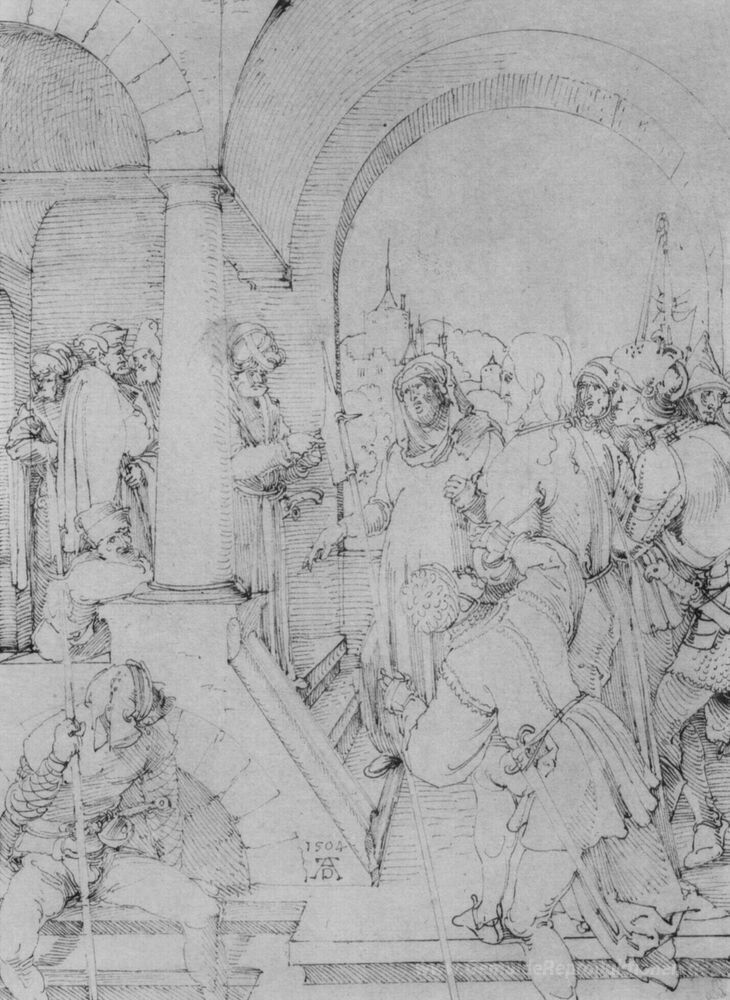 Wir bieten Ihnen eine handgefertigte Reproduktion auf Leinwand des berühmten Kunstwerks 'Christus vor Pilatus' von Albrecht Durer, aus dem Reproduktionsmuseum.