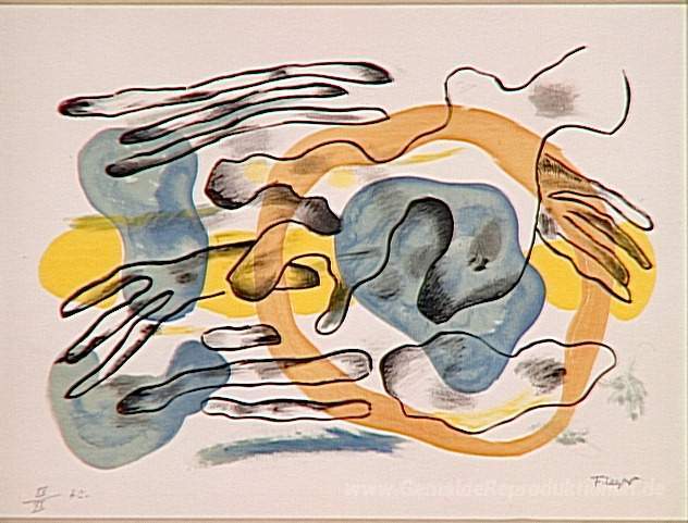 Wir bieten Ihnen eine handgefertigte Reproduktion auf Leinwand des berühmten Kunstwerks 'Clouds' von Fernand Leger, aus dem Reproduktionsmuseum.
