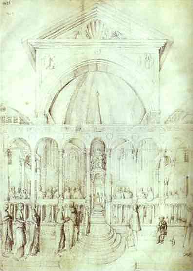 Wir bieten Ihnen eine handgefertigte Reproduktion auf Leinwand des berühmten Kunstwerks 'Darstellung der Jungfrau im Tempel' von Jacopo Bellini, aus dem Reproduktionsmuseum.