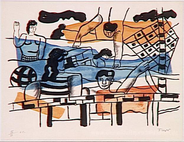 Wir bieten Ihnen eine handgefertigte Reproduktion auf Leinwand des berühmten Kunstwerks 'Das Schwimmbecken' von Fernand Leger, aus dem Reproduktionsmuseum.