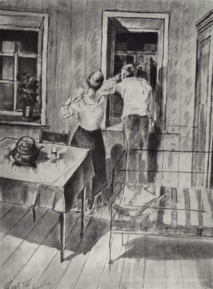 Wir bieten Ihnen eine handgefertigte Reproduktion auf Leinwand des berühmten Kunstwerks 'Der erste Entwurf für das Gemälde 1919' von Kuzma Petrov-Vodkin, aus dem Reproduktionsmuseum.