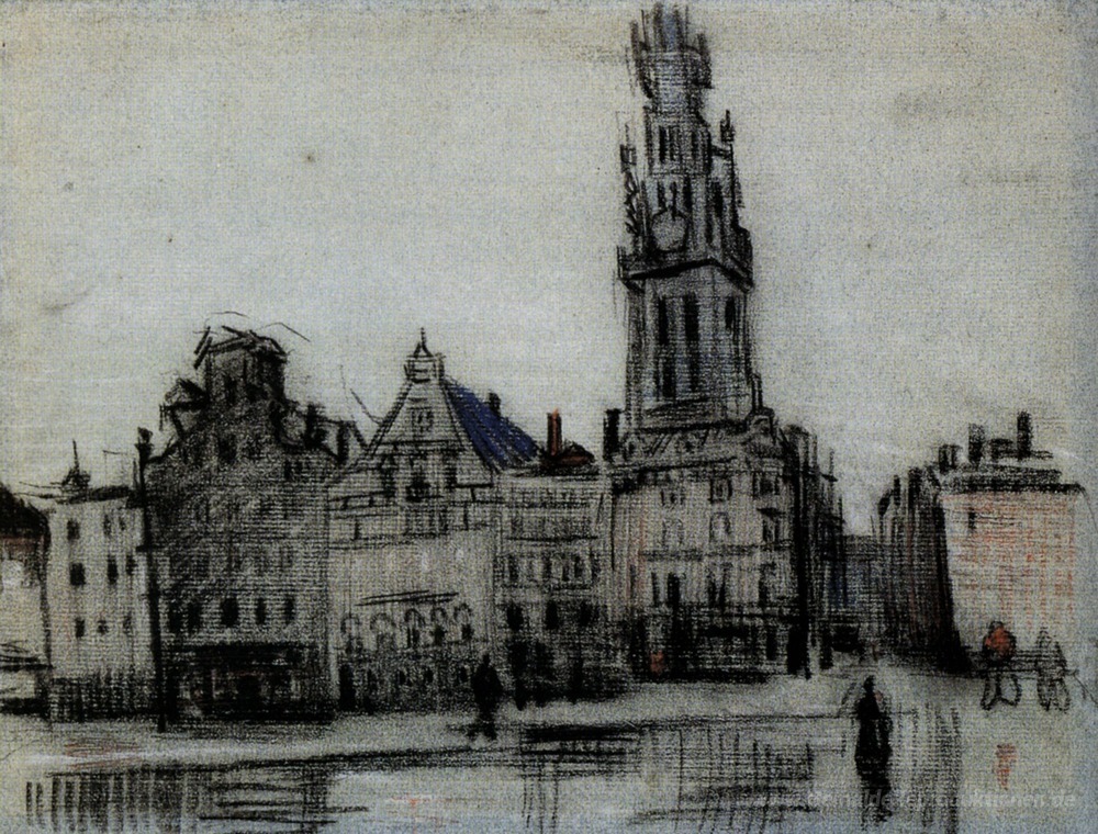 Wir bieten Ihnen eine handgefertigte Reproduktion auf Leinwand des berühmten Kunstwerks 'Der Grote Markt' von Vincent van Gogh, aus dem Reproduktionsmuseum.