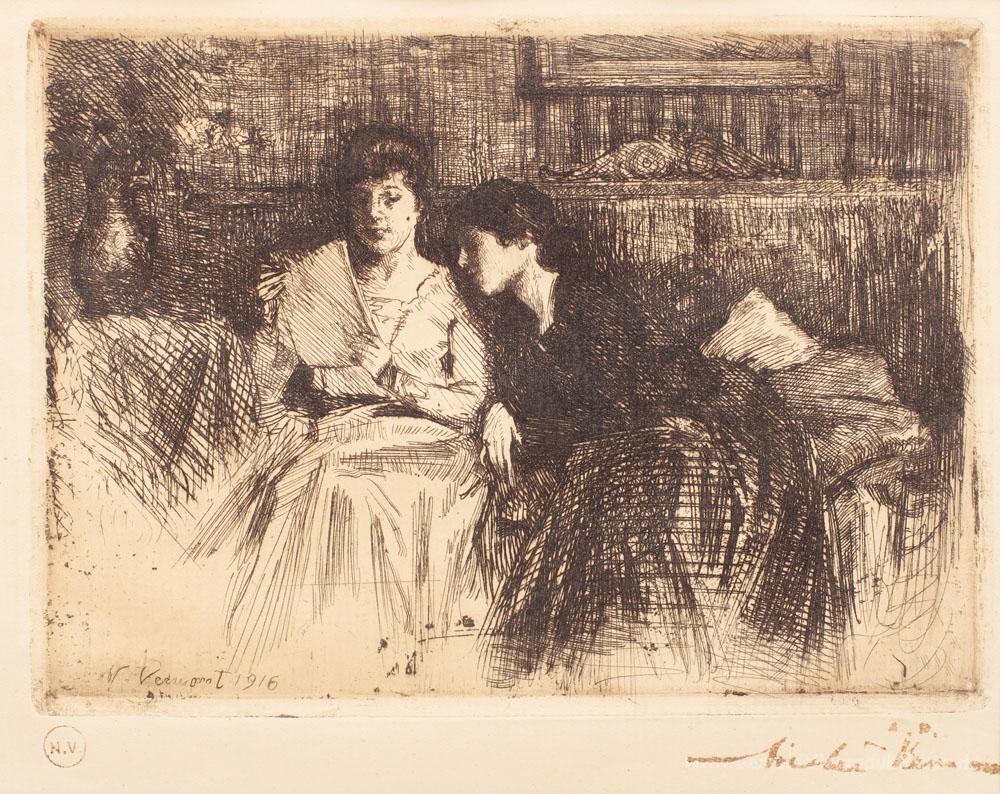 Wir bieten Ihnen eine handgefertigte Reproduktion auf Leinwand des berühmten Kunstwerks 'Der Liebesbrief' von Nicolae Vermont, aus dem Reproduktionsmuseum.