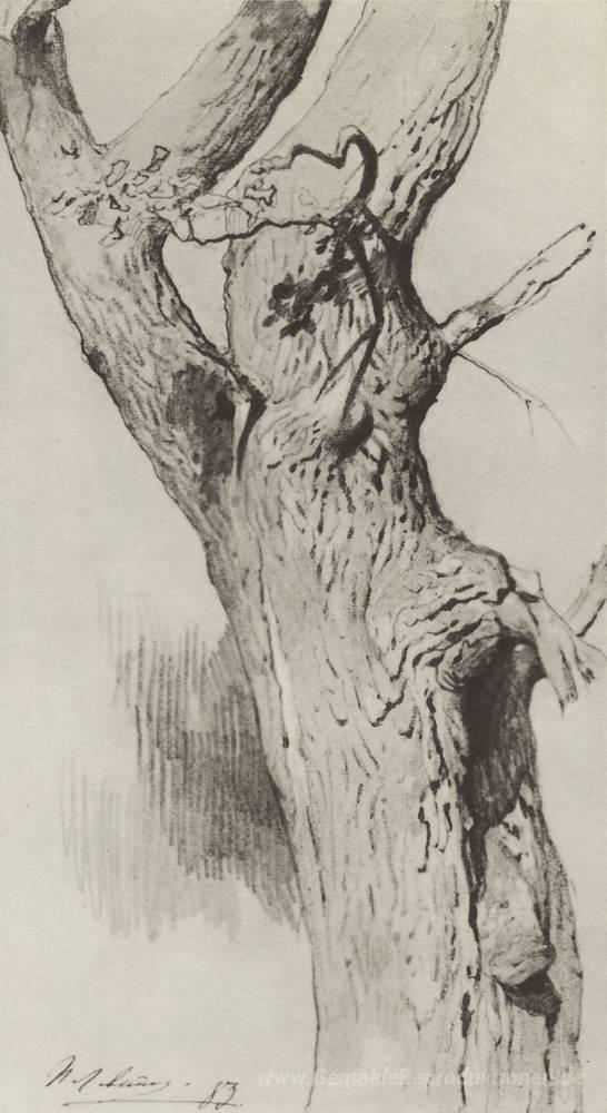 Wir bieten Ihnen eine handgefertigte Reproduktion auf Leinwand des berühmten Kunstwerks 'Der Stamm eines alten Baumes' von Isaac Levitan, aus dem Reproduktionsmuseum.