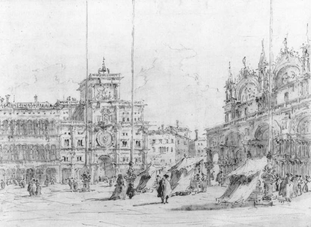 Wir bieten Ihnen eine handgefertigte Reproduktion auf Leinwand des berühmten Kunstwerks 'Der Torre del Orologio' von Francesco Guardi, aus dem Reproduktionsmuseum.