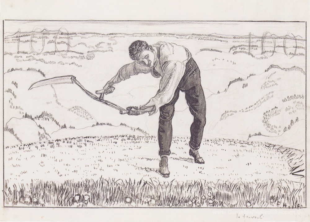 Wir bieten Ihnen eine handgefertigte Reproduktion auf Leinwand des berühmten Kunstwerks 'Die Arbeitsmäher' von Ferdinand Hodler, aus dem Reproduktionsmuseum.
