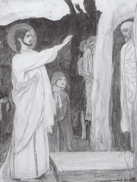 Wir bieten Ihnen eine handgefertigte Reproduktion auf Leinwand des berühmten Kunstwerks 'Die Auferweckung des Lazarus' von Mikhail Nesterov, aus dem Reproduktionsmuseum.