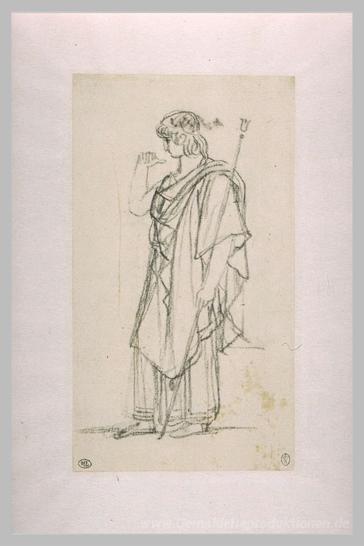 Wir bieten Ihnen eine handgefertigte Reproduktion auf Leinwand des berühmten Kunstwerks 'Die Figur des Orestes, stehend drapiert' von Pierre-Narcisse Guerin, aus dem Reproduktionsmuseum.