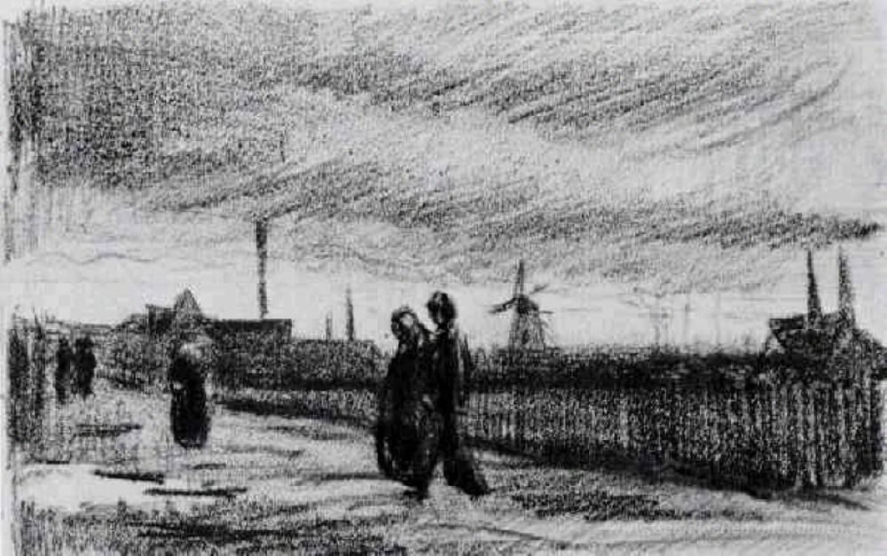 Wir bieten Ihnen eine handgefertigte Reproduktion auf Leinwand des berühmten Kunstwerks 'Die Leute gehen in Eindhoven' von Vincent van Gogh, aus dem Reproduktionsmuseum.