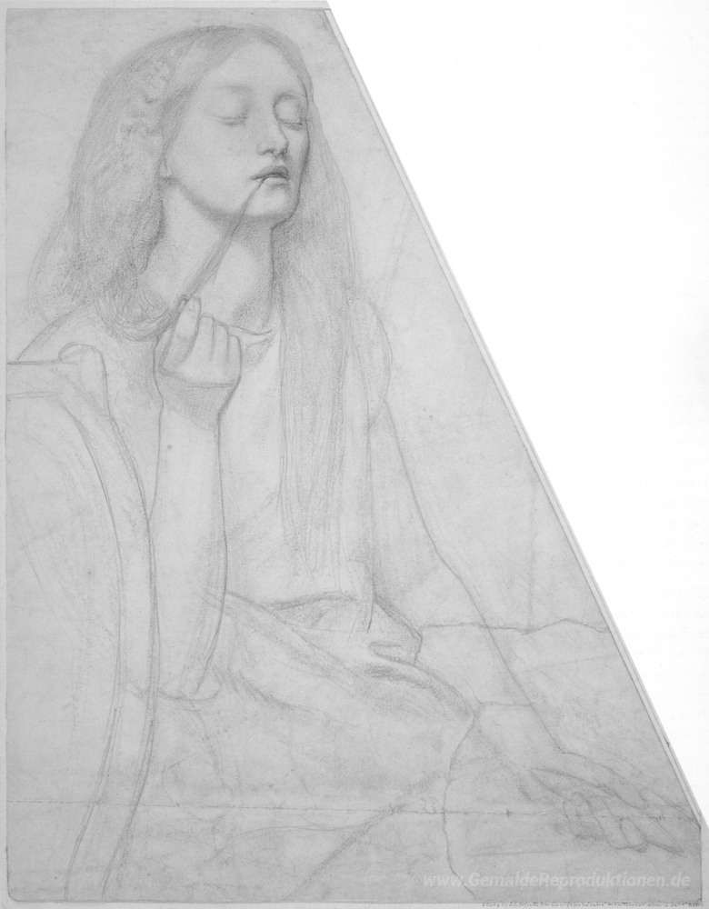 Wir bieten Ihnen eine handgefertigte Reproduktion auf Leinwand des berühmten Kunstwerks 'Die Rückkehr des Tibullus Delia Studie für Delia' von Dante Gabriel Rossetti, aus dem Reproduktionsmuseum.
