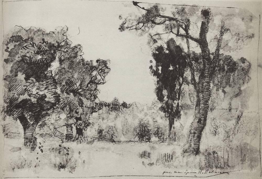 Wir bieten Ihnen eine handgefertigte Reproduktion auf Leinwand des berühmten Kunstwerks 'Dorf am Waldrand' von Isaac Levitan, aus dem Reproduktionsmuseum.