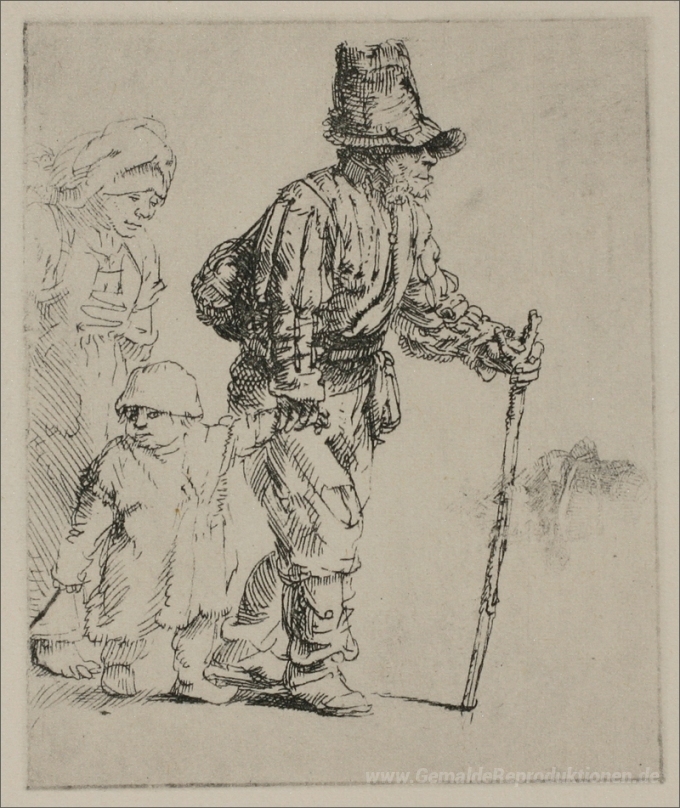 Wir bieten Ihnen eine handgefertigte Reproduktion auf Leinwand des berühmten Kunstwerks 'Drei Bauern Reisen' von Rembrandt, aus dem Reproduktionsmuseum.