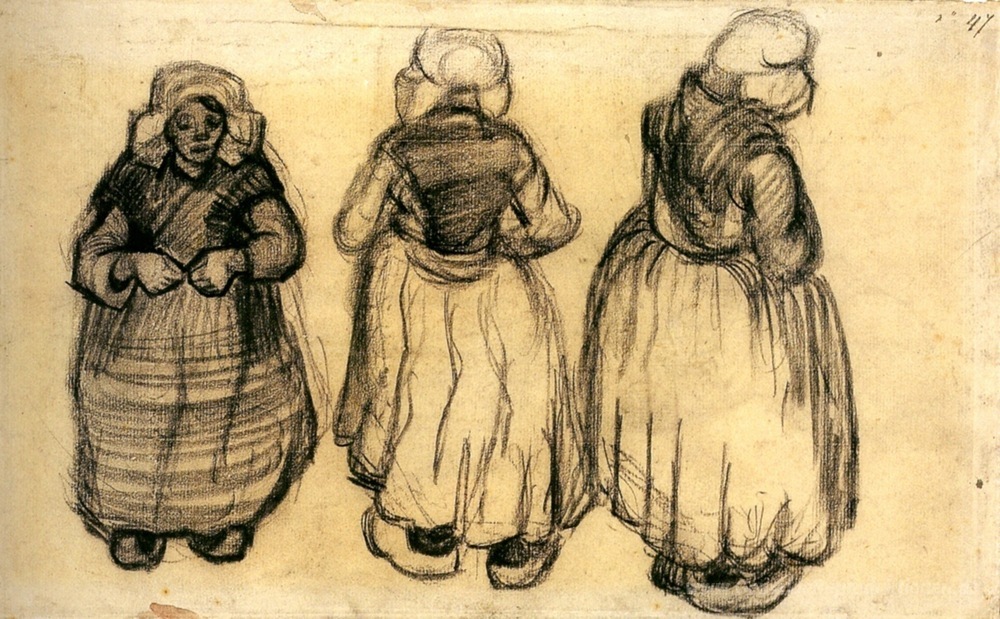 Wir bieten Ihnen eine handgefertigte Reproduktion auf Leinwand des berühmten Kunstwerks 'Drei Studien einer Frau mit einem Schal' von Vincent van Gogh, aus dem Reproduktionsmuseum.