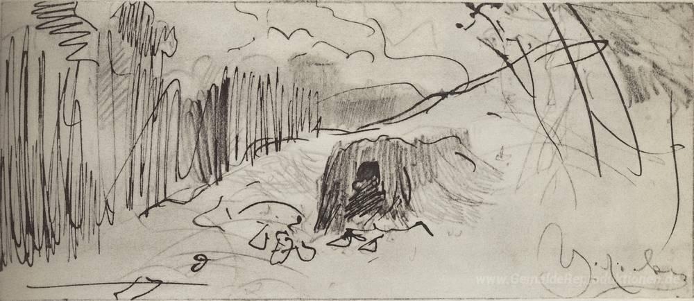 Wir bieten Ihnen eine handgefertigte Reproduktion auf Leinwand des berühmten Kunstwerks 'Eine Hütte' von Isaac Levitan, aus dem Reproduktionsmuseum.
