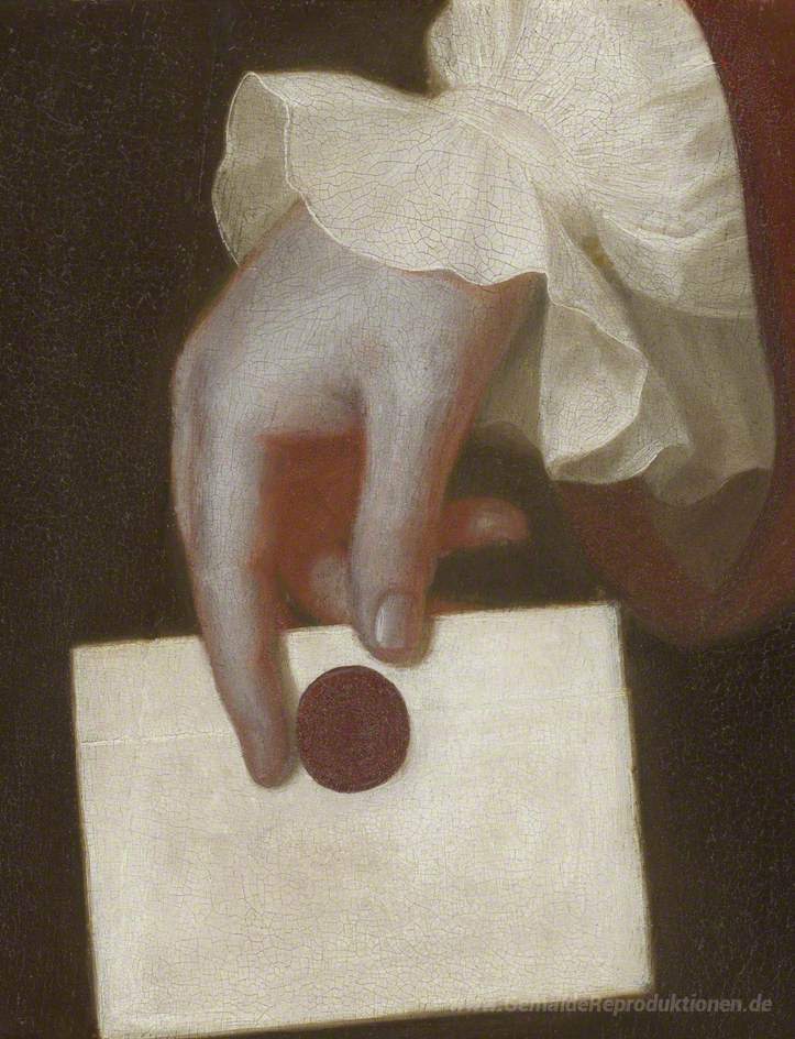 Wir bieten Ihnen eine handgefertigte Reproduktion auf Leinwand des berühmten Kunstwerks 'Eine Hand hält einen Brief' von George Romney, aus dem Reproduktionsmuseum.