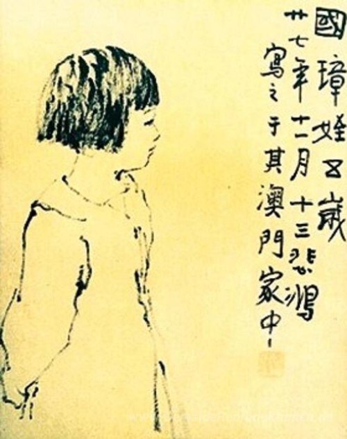 Wir bieten Ihnen eine handgefertigte Reproduktion auf Leinwand des berühmten Kunstwerks 'Eine Skizze von Gertrude im Five' von Xu Beihong, aus dem Reproduktionsmuseum.