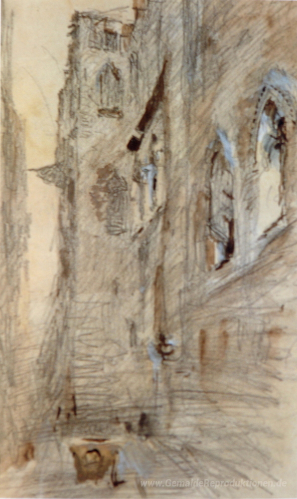 Wir bieten Ihnen eine handgefertigte Reproduktion auf Leinwand des berühmten Kunstwerks 'Eine Straße in Venedig' von John Ruskin, aus dem Reproduktionsmuseum.