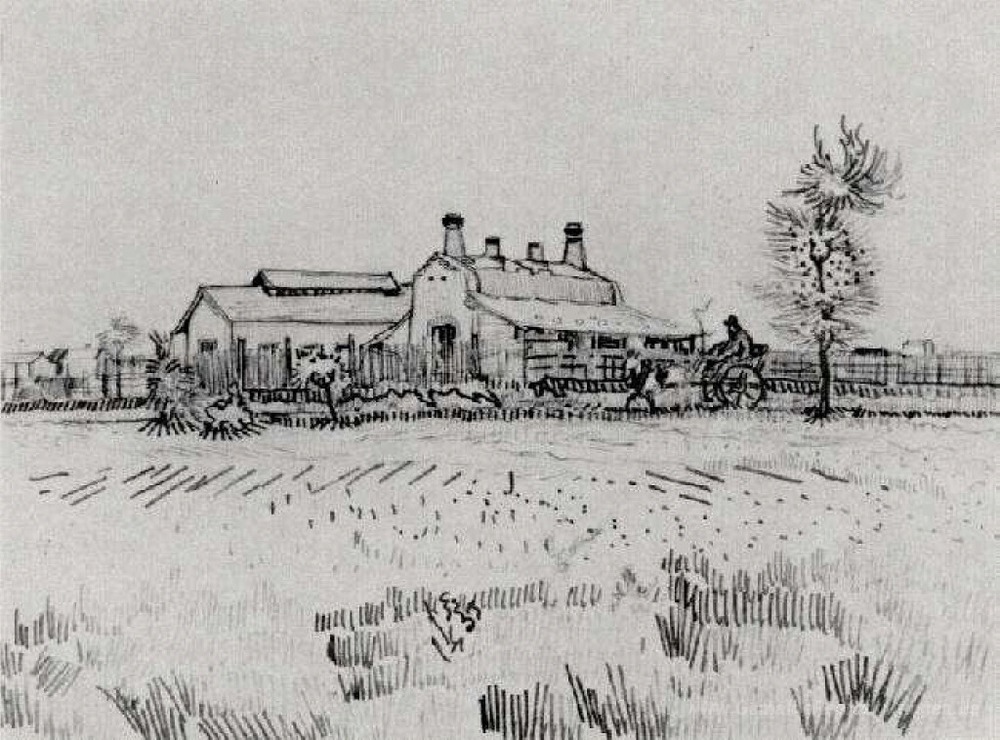 Wir bieten Ihnen eine handgefertigte Reproduktion auf Leinwand des berühmten Kunstwerks 'Feld mit Werks' von Vincent van Gogh, aus dem Reproduktionsmuseum.