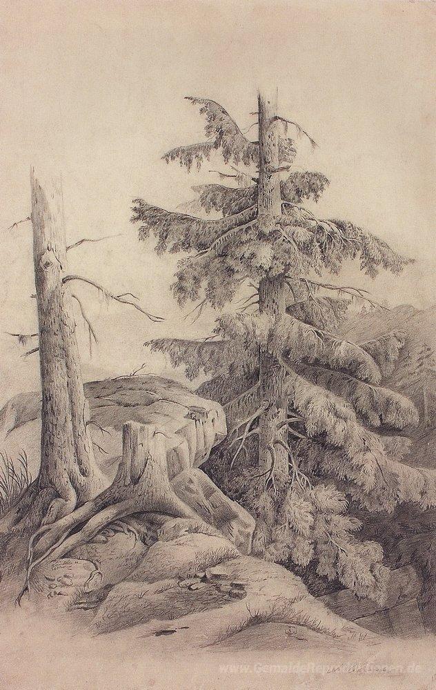 Wir bieten Ihnen eine handgefertigte Reproduktion auf Leinwand des berühmten Kunstwerks 'Fichte' von Aleksey Savrasov, aus dem Reproduktionsmuseum.